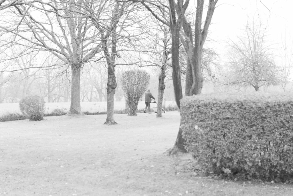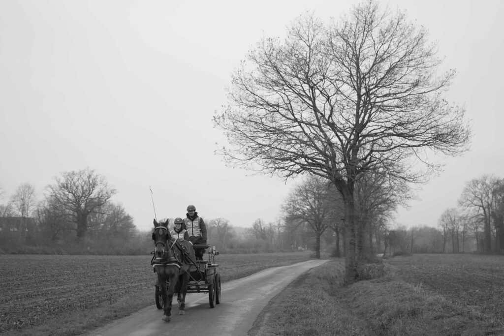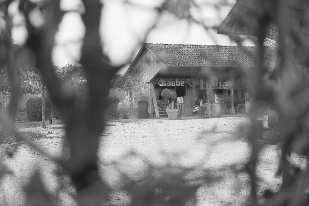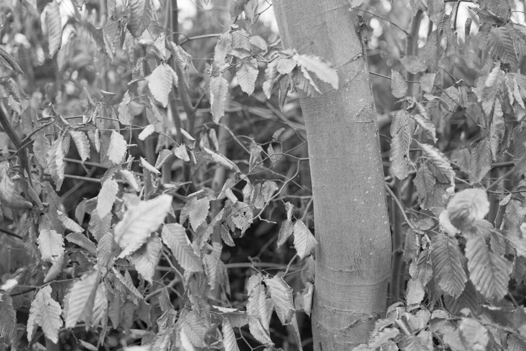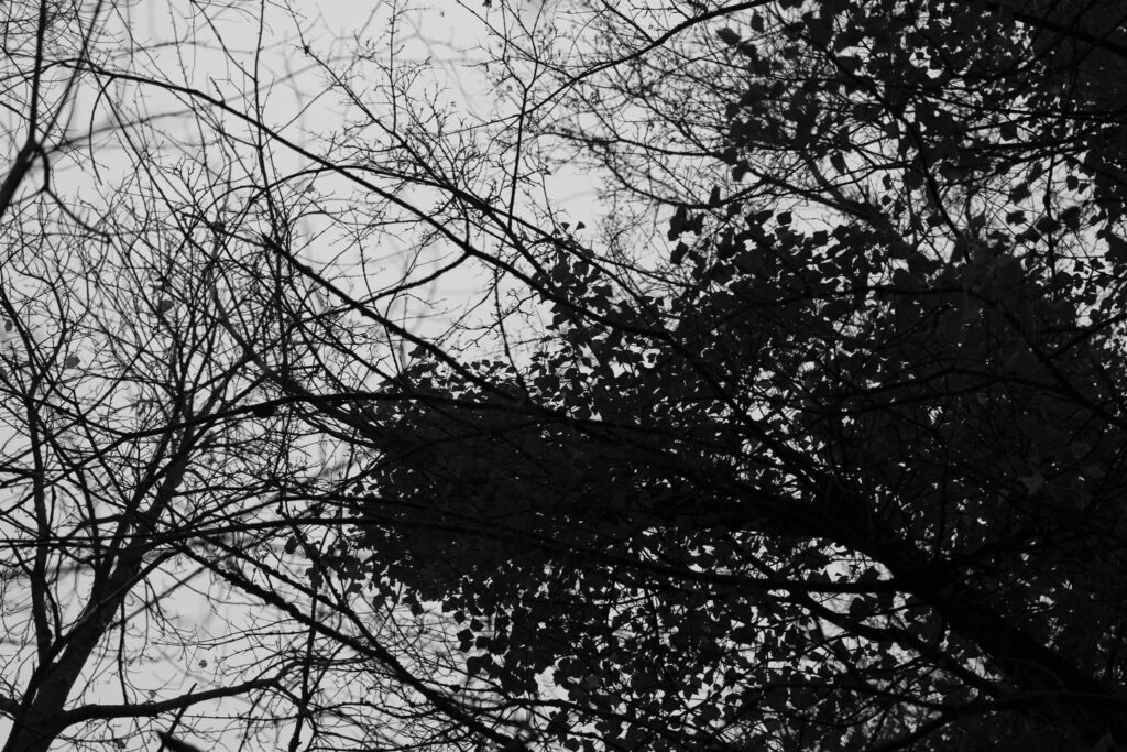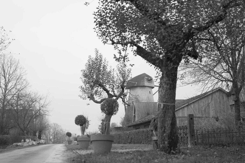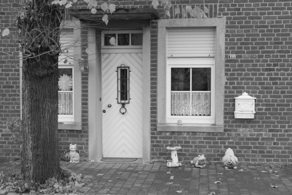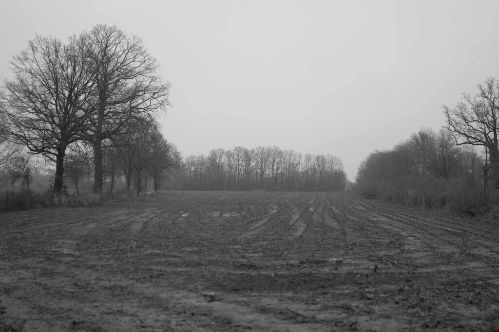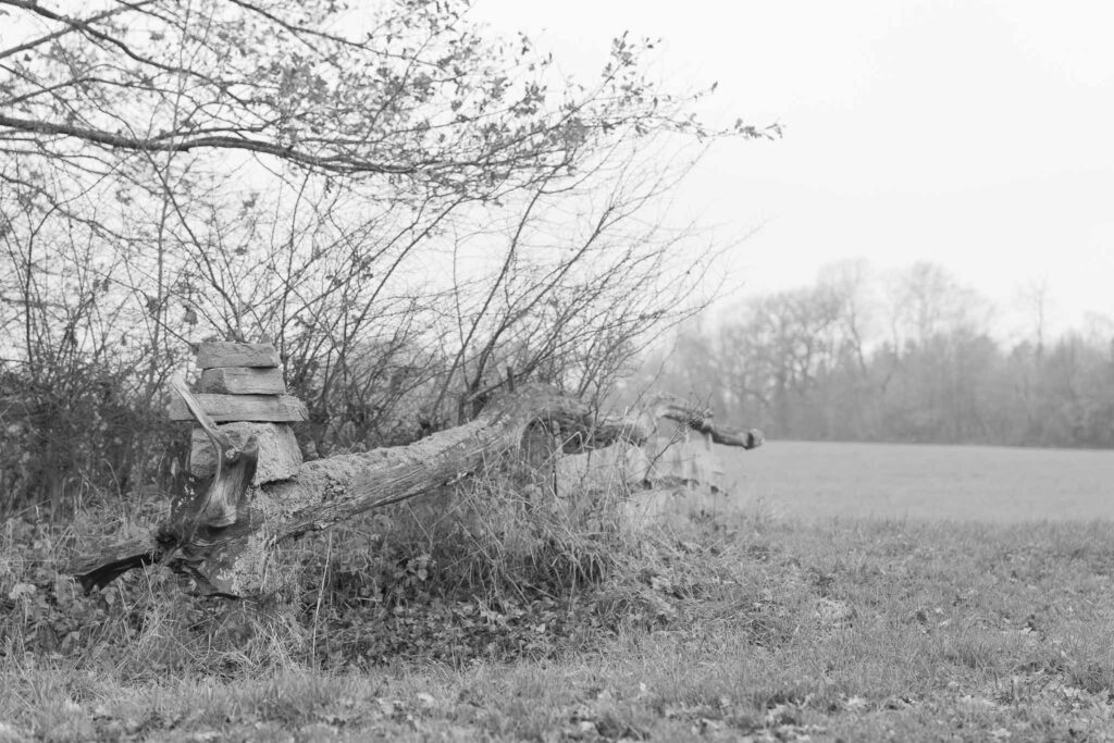 Und jetzt nach der Runde? Komisches Gefühl, weil sie immer dabei sind, aber mit Beginn der Runde kam ich ganz schnell in eine innere Ruhe, die Äußere war hier auf dem Land ja gegeben. Das Wetter war nicht wirklich “fotogen” aber was sollte es. Fast meditativ kam ich schnell in einen fokussierten Kamerablick und es tat richtig gut. Mir kam Eines nach dem Anderen vor die Linse und habe insgesamt 113 mal ausgelöst. Die Menge ist mir nicht bewusst geworden, es fühlte sich wie ein Aufsaugen von Blicken an, aber ich hatte trotzdem das Gefühl, abgeschaltet zu haben.  So habe ich z.B. erst im nachhinein gemerkt, als eine Mutter mit ihren Kind im Hänger an mir vorbeifuhr, das das ja mal ein Motiv wert gewesen wäre. Aber ich war einfach total Gedankenverloren… Nun wiederholen sich ja die Motive, weil ich oft diese Runde gehe, aber ich hatte mich ja auf sw beschränkt und die 50mm. Und ich habe intuitiv versucht, einen neuen, weiteren Blick auf die Motive zu erhaschen. Ob mir das gelungen ist? Na, seht selbst. Was mir allerdings aufgefallen ist: mit sw funktioniert es bei mir eigentlich gut, kenn das ja von früher, aber oft dachte ich: hier noch ein bisschen Kontrast, hier eine kleine Vignette, oder das Grün neben dem Laub kommt nicht so gut rüber etc. Sprich, ich würde gerne doch noch die Bilder bearbeiten, aber es ist wie es ist, habe es so gewollt und nun kommen diese Bilder so wie aus der Kamera. In ein paar Tagen werde ich mich nochmal an die Raws setzen und mal schauen, was die Bilder dann mit mir machen. Das Hintertürchen ist geöffnet…
