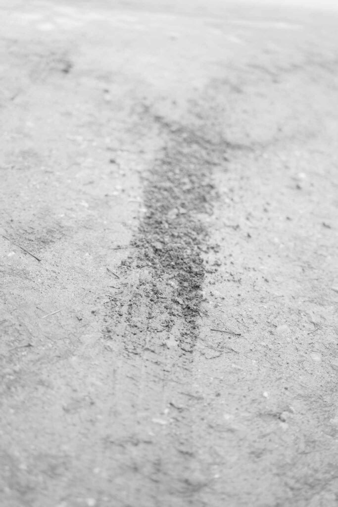 Diese Spur hinterließ irgendjemand und der hatte es wohl sehr eilig… an dieser Ecke zu uns ist mal ein eiliger Amazonfahrer von uns kommend im Graben gelandet,weil er wohl zu schnell war,,, Ein Trecker musste ihn aus dem Graben ziehen.